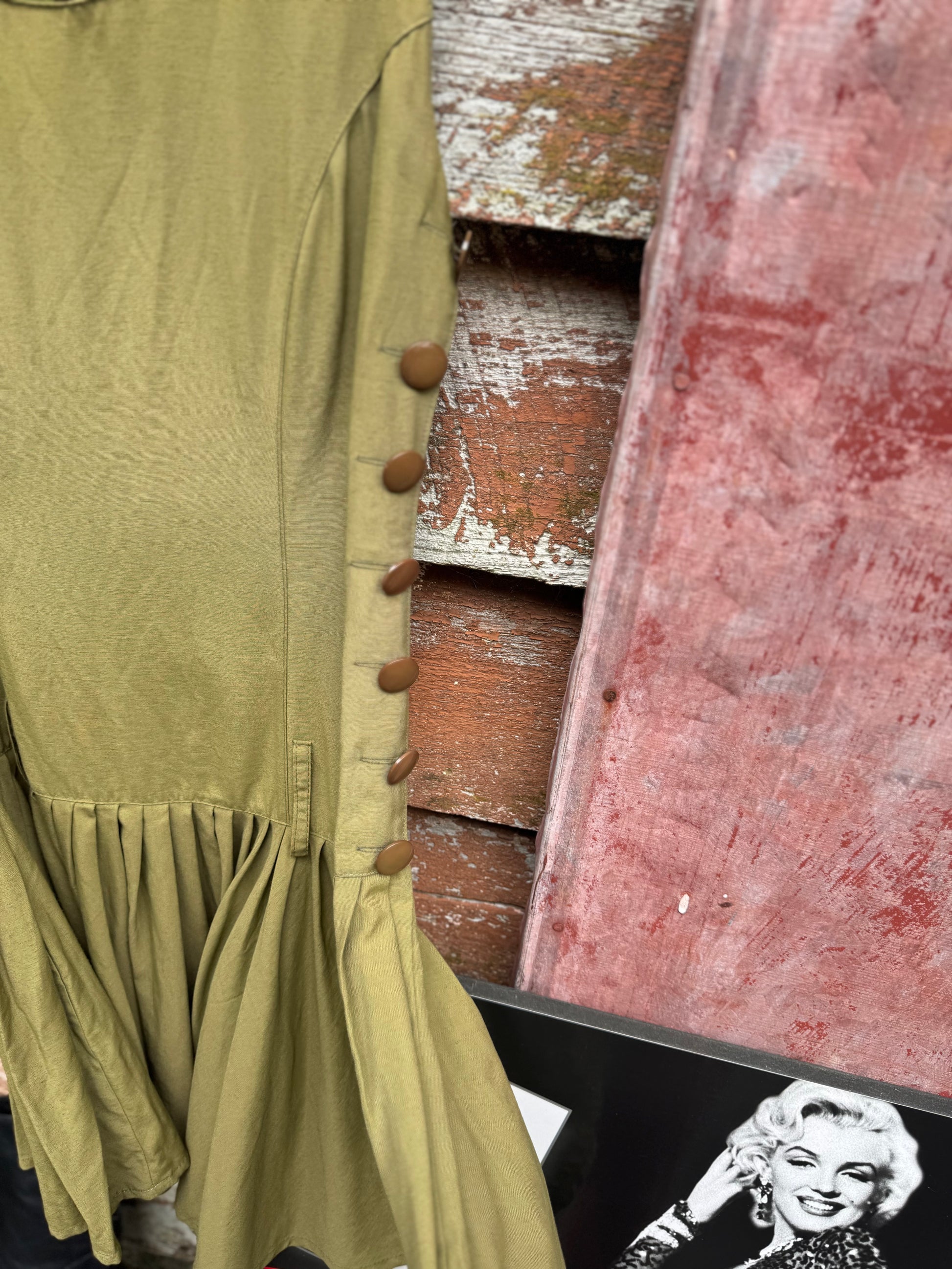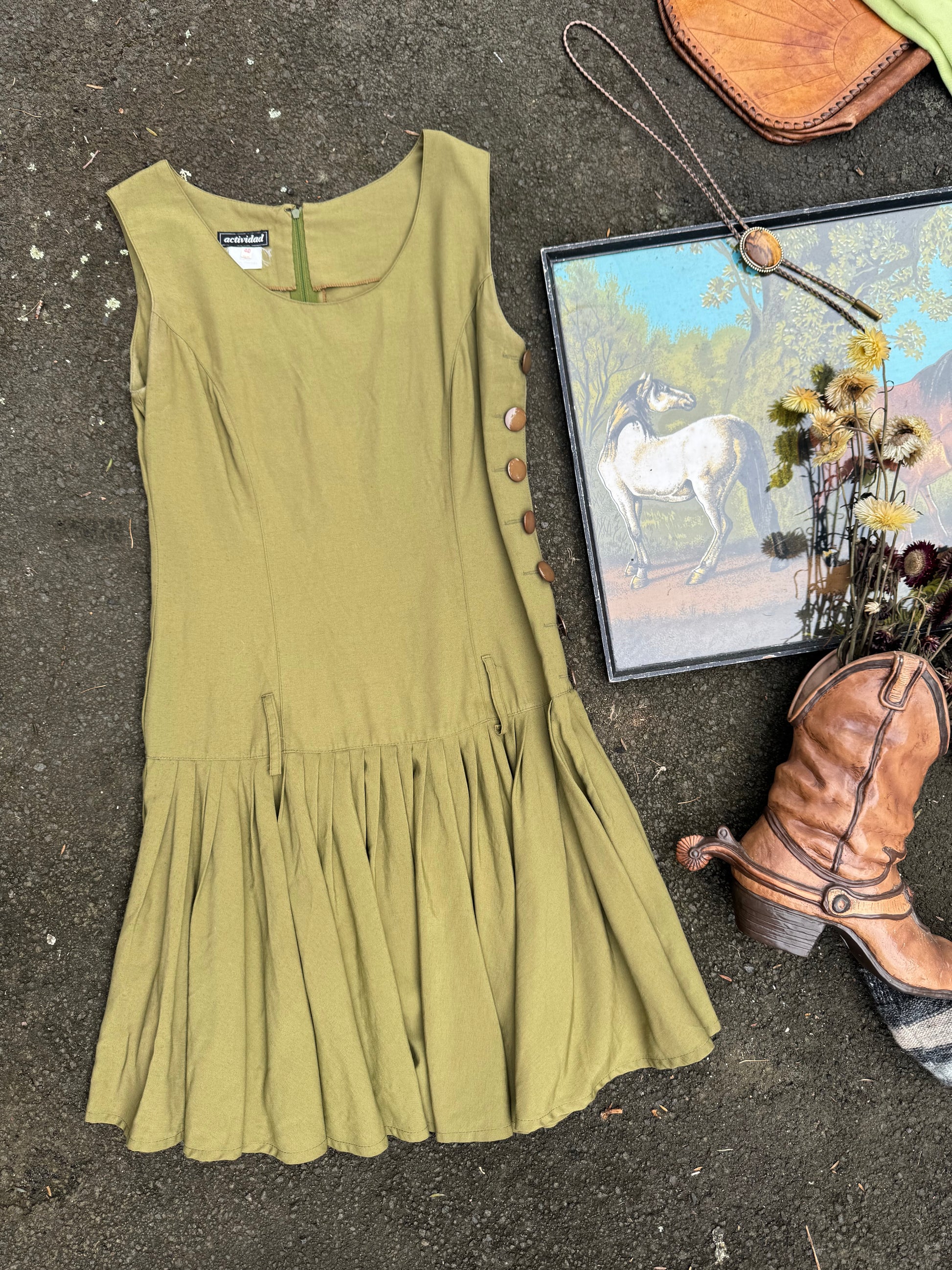 Stunning drop waist vintage dress, buttons on the side and a belt loop so you could add a belt to make a statement, or wear as is.