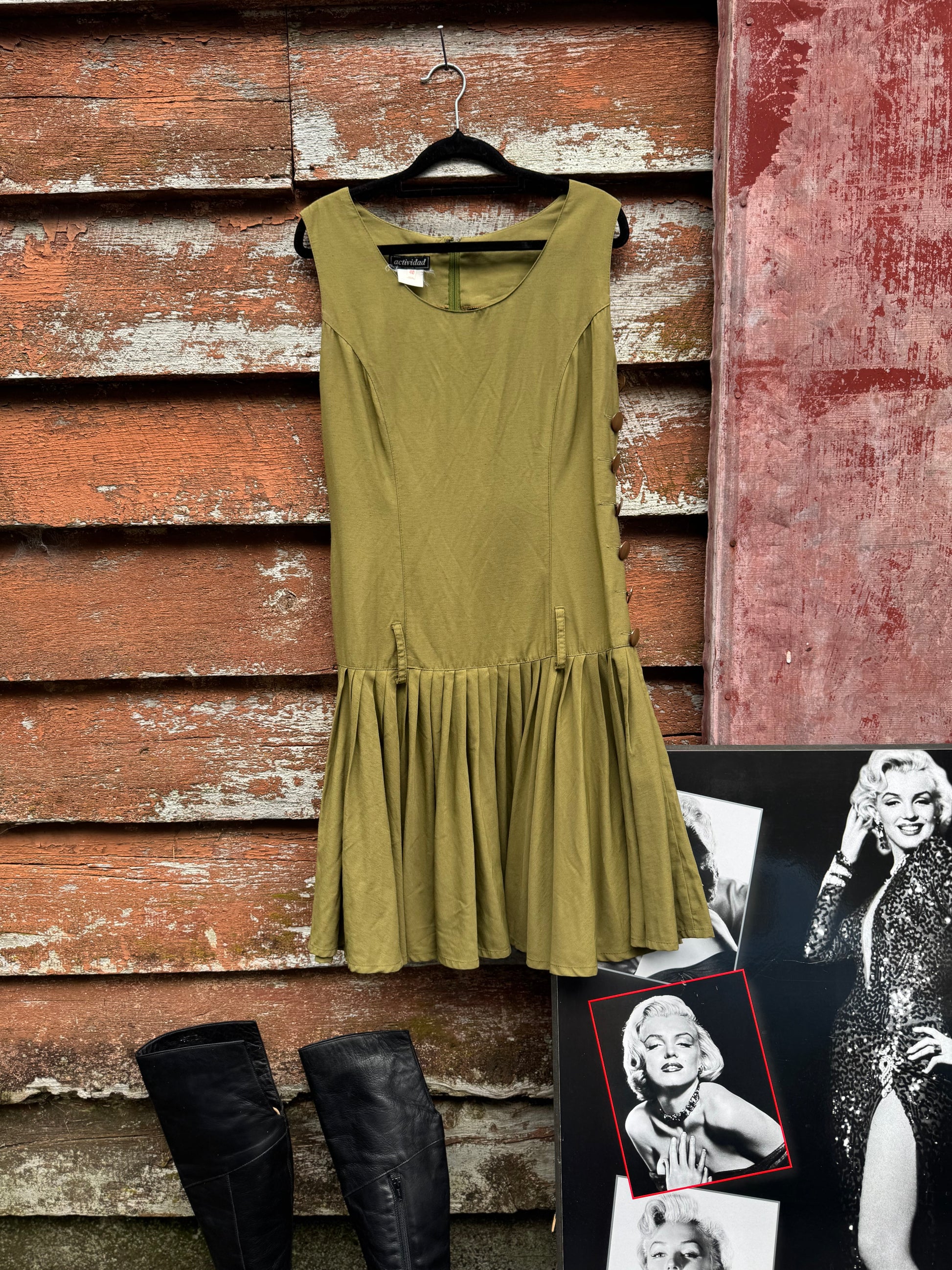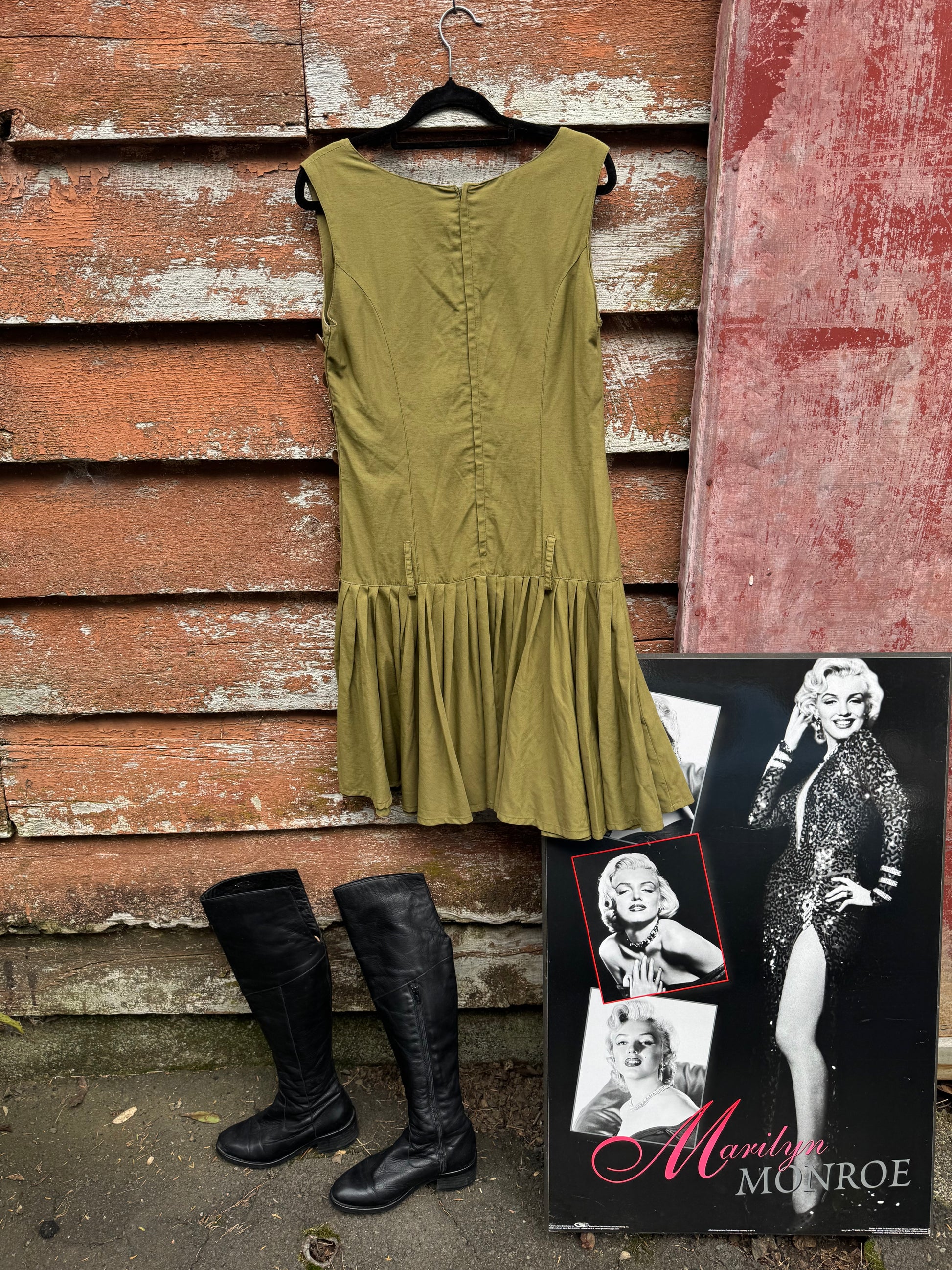 1980s Utility style dress with drop waist.