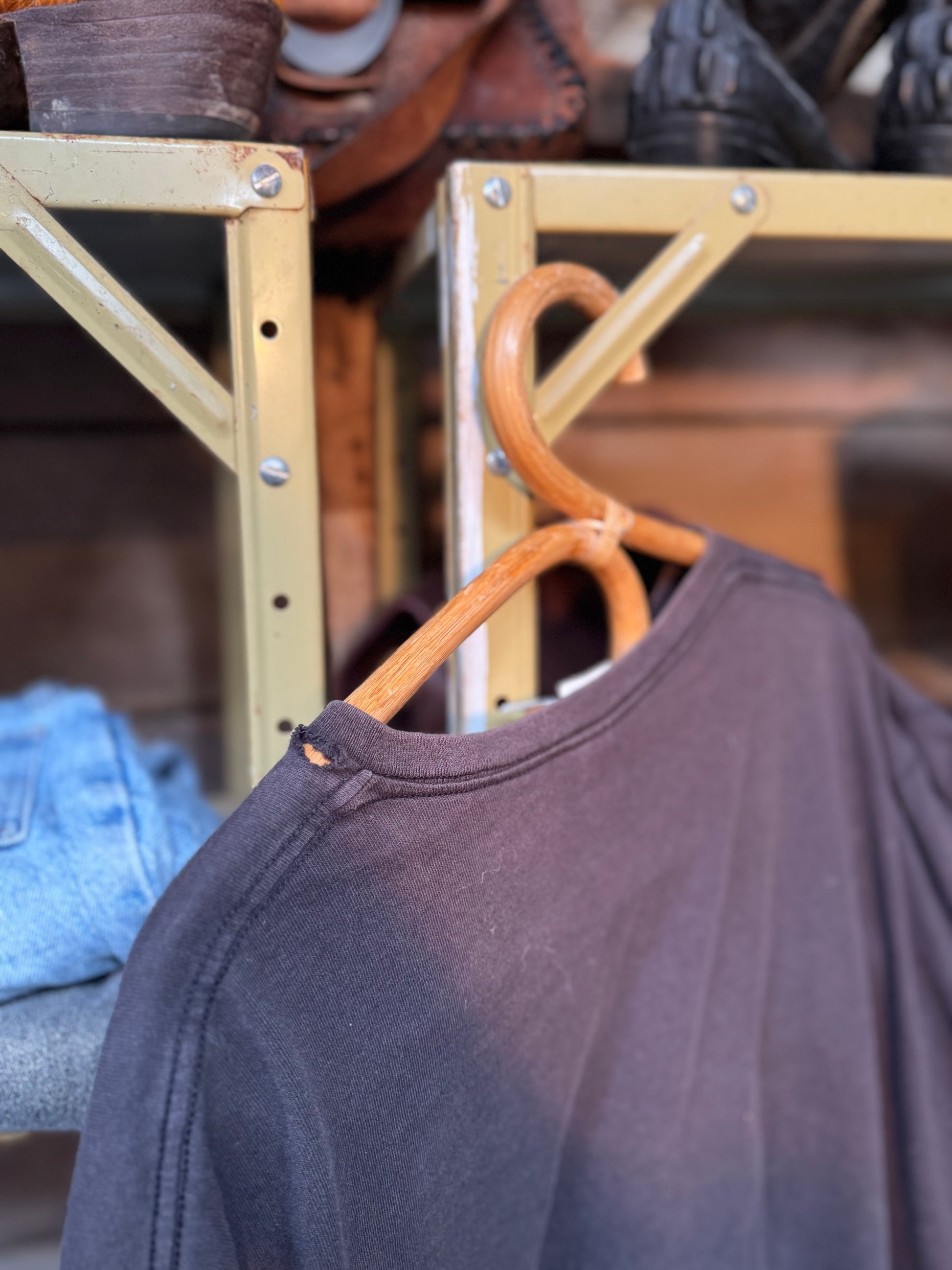 hole on shoulder as photographed, quite worn soft, and a little faded.