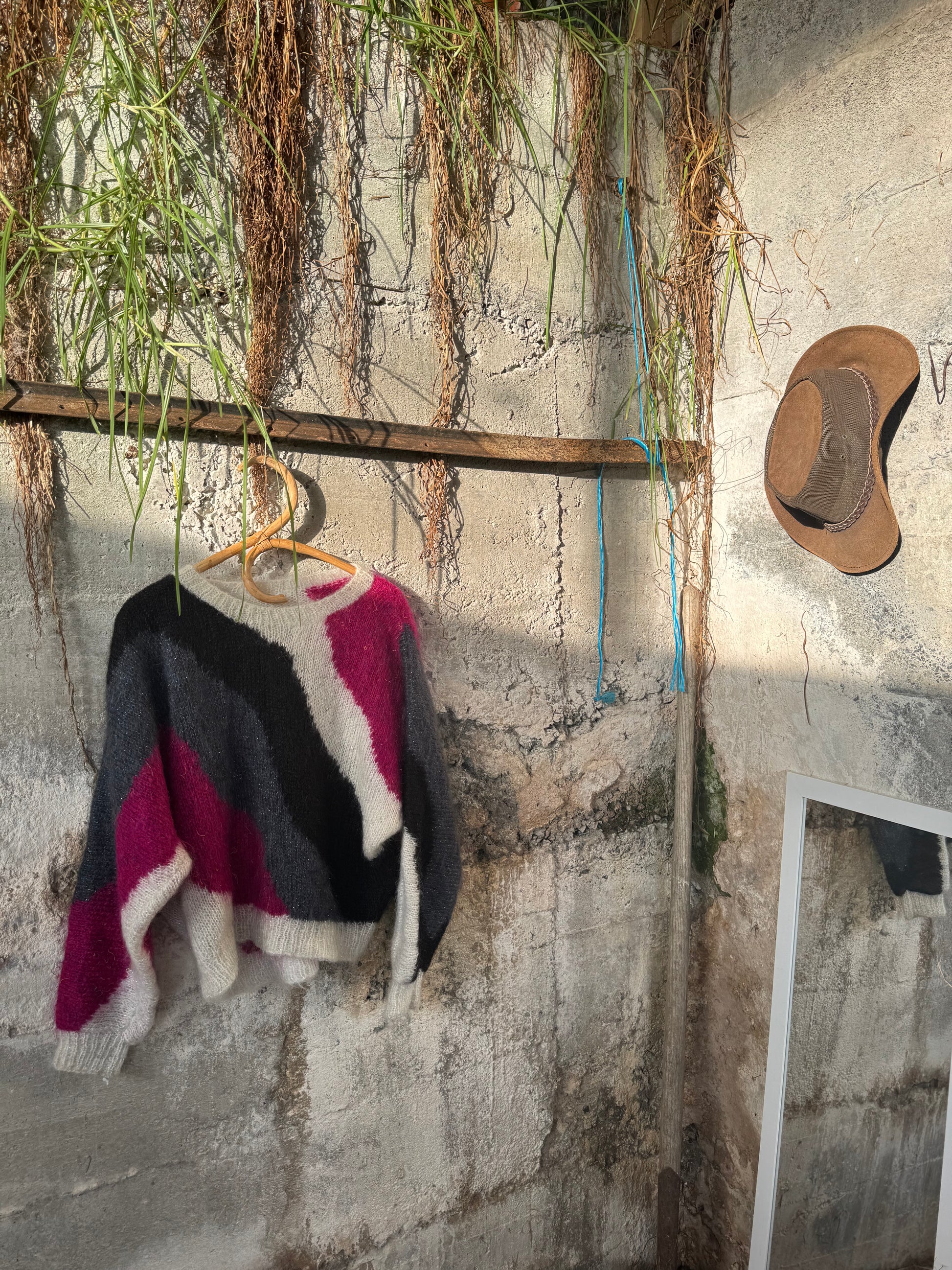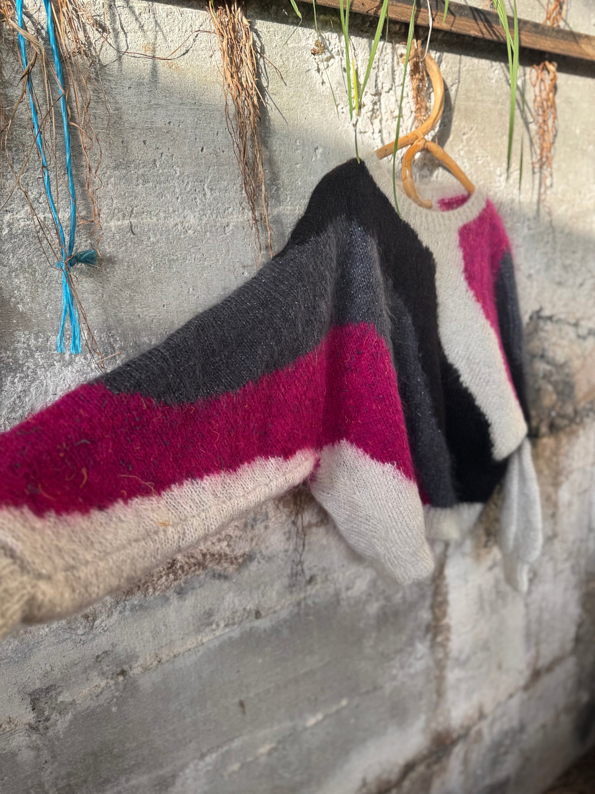 Care: hand wash with cold water, dry lying flat. If washed in machine in warm the mohair wool will shrink. Wash only when needed, by hand of a short cycle in machine on delicate cycle with cold water.
