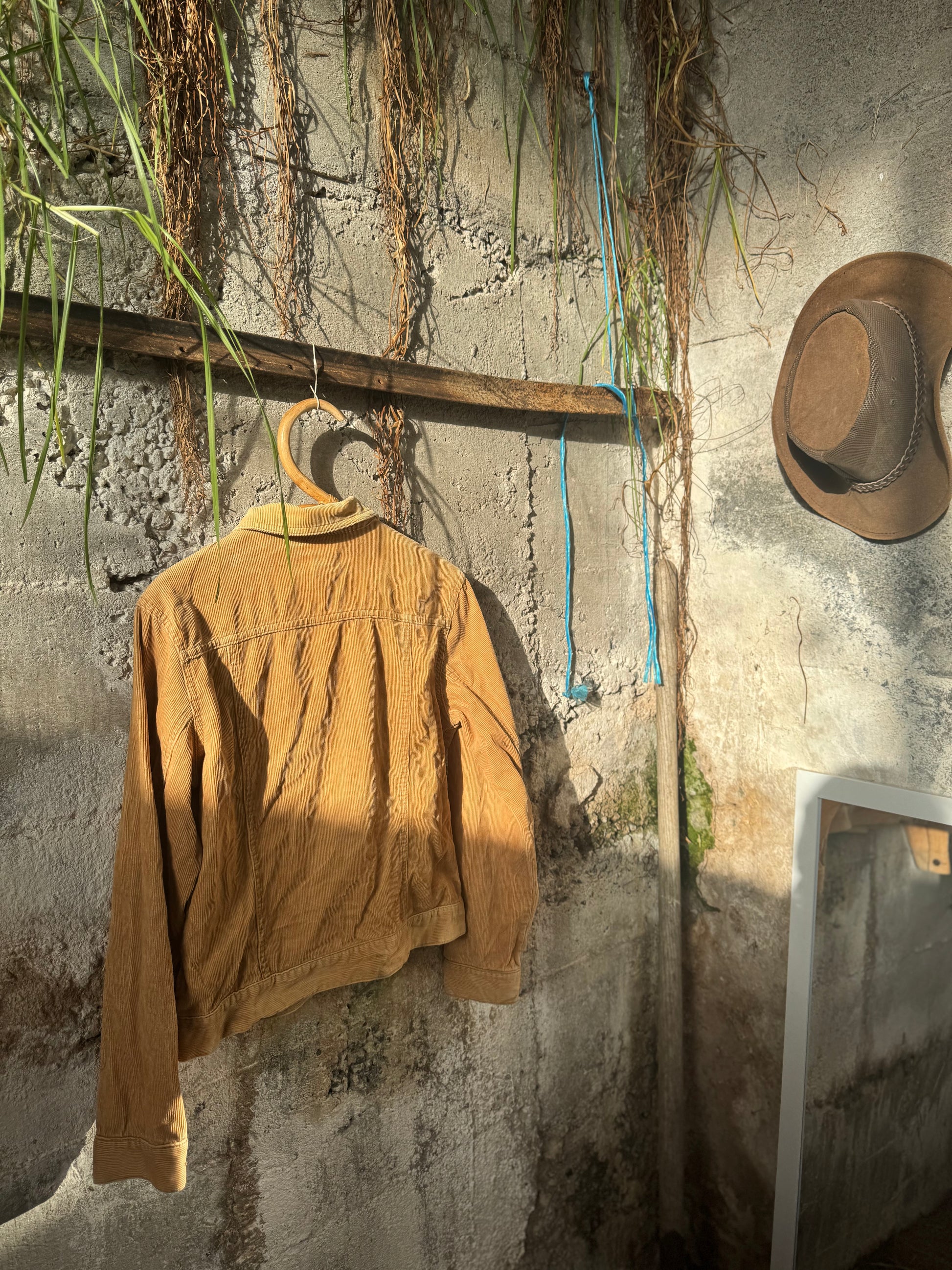 Light tan mustardy corduroy jacket. Perfect for winter paired with jeans or (cords if you like to double up). Also great in summer over a dress or a mini.