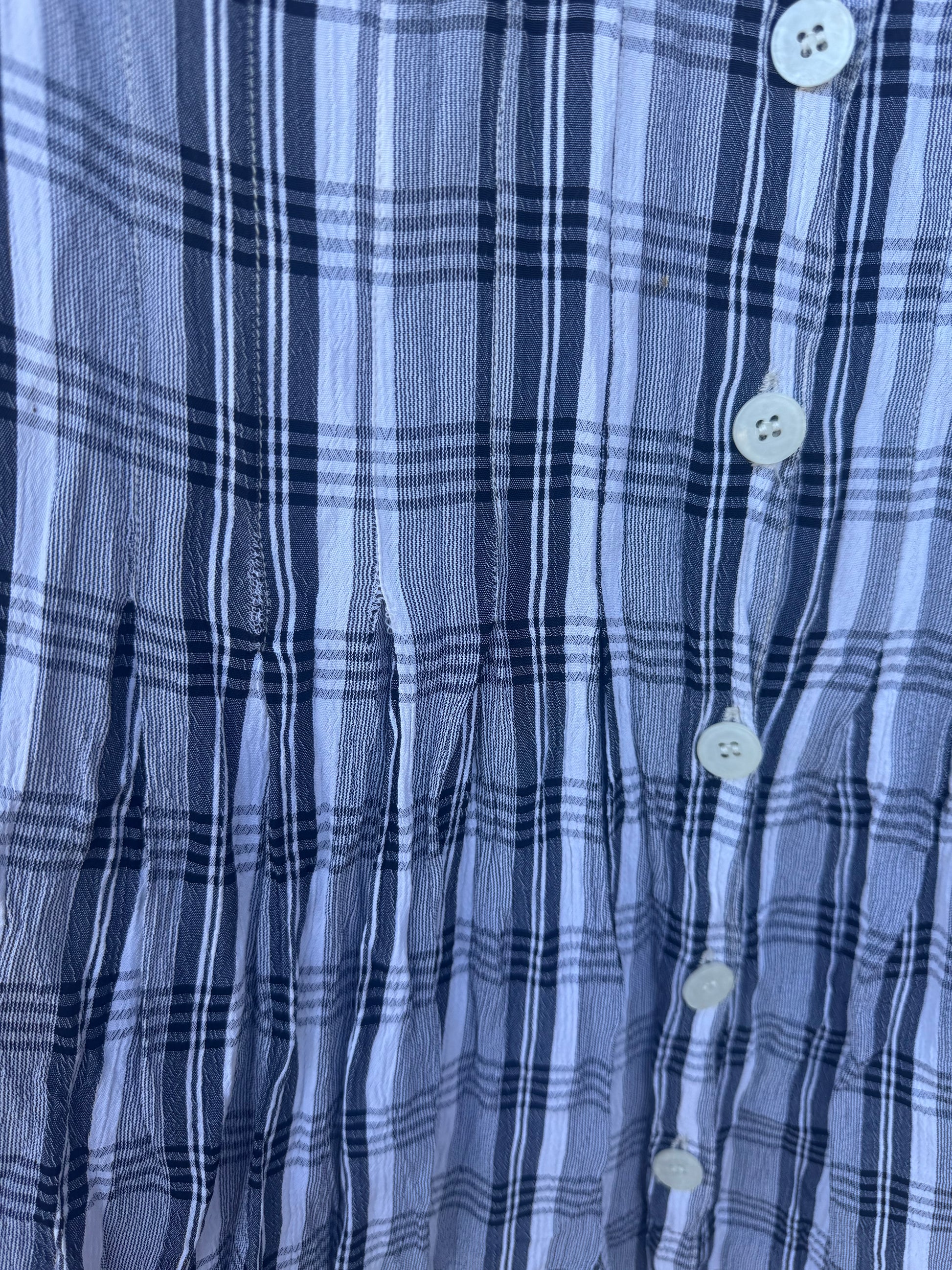 *note there’s a few minor flaws, a few stitches loose, and slight fray at neck. Not very noticeable given the texture and print of this dress. Sizing indicates this would best fit a size 12