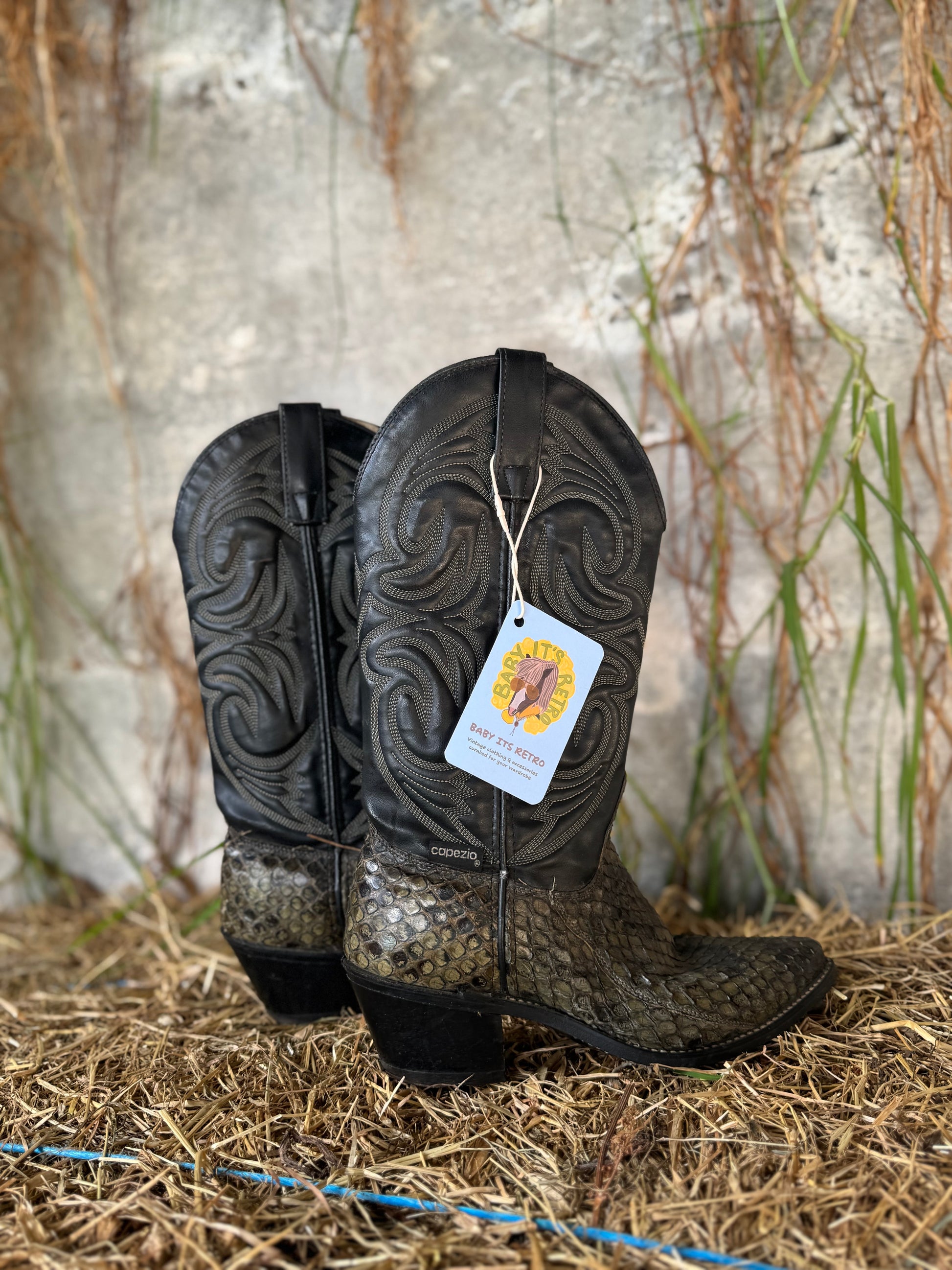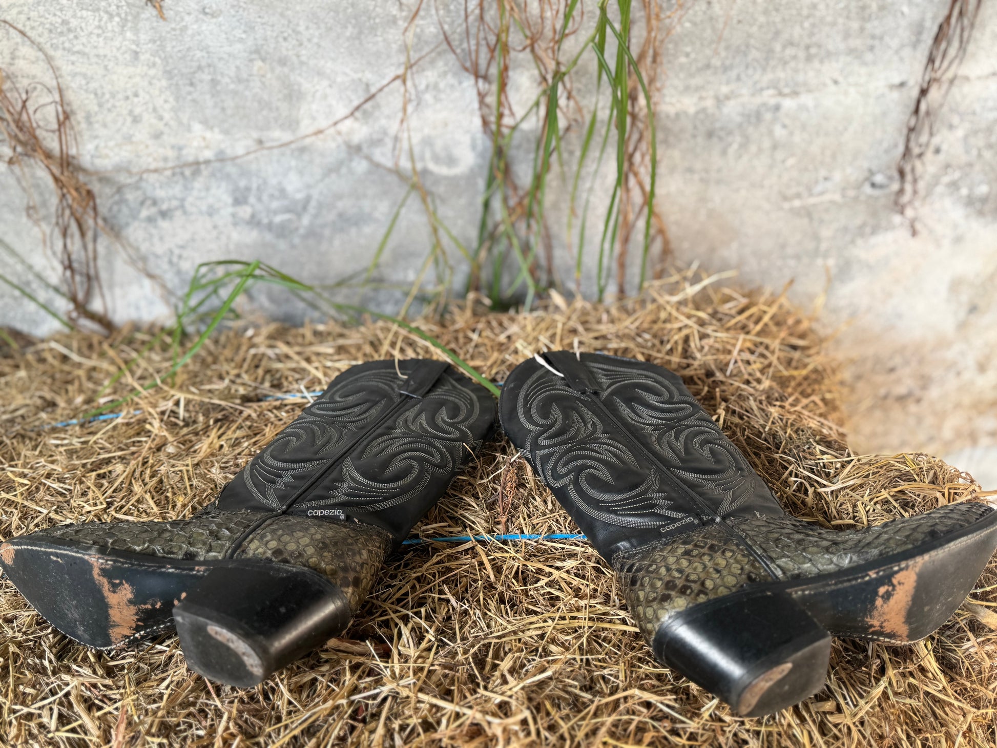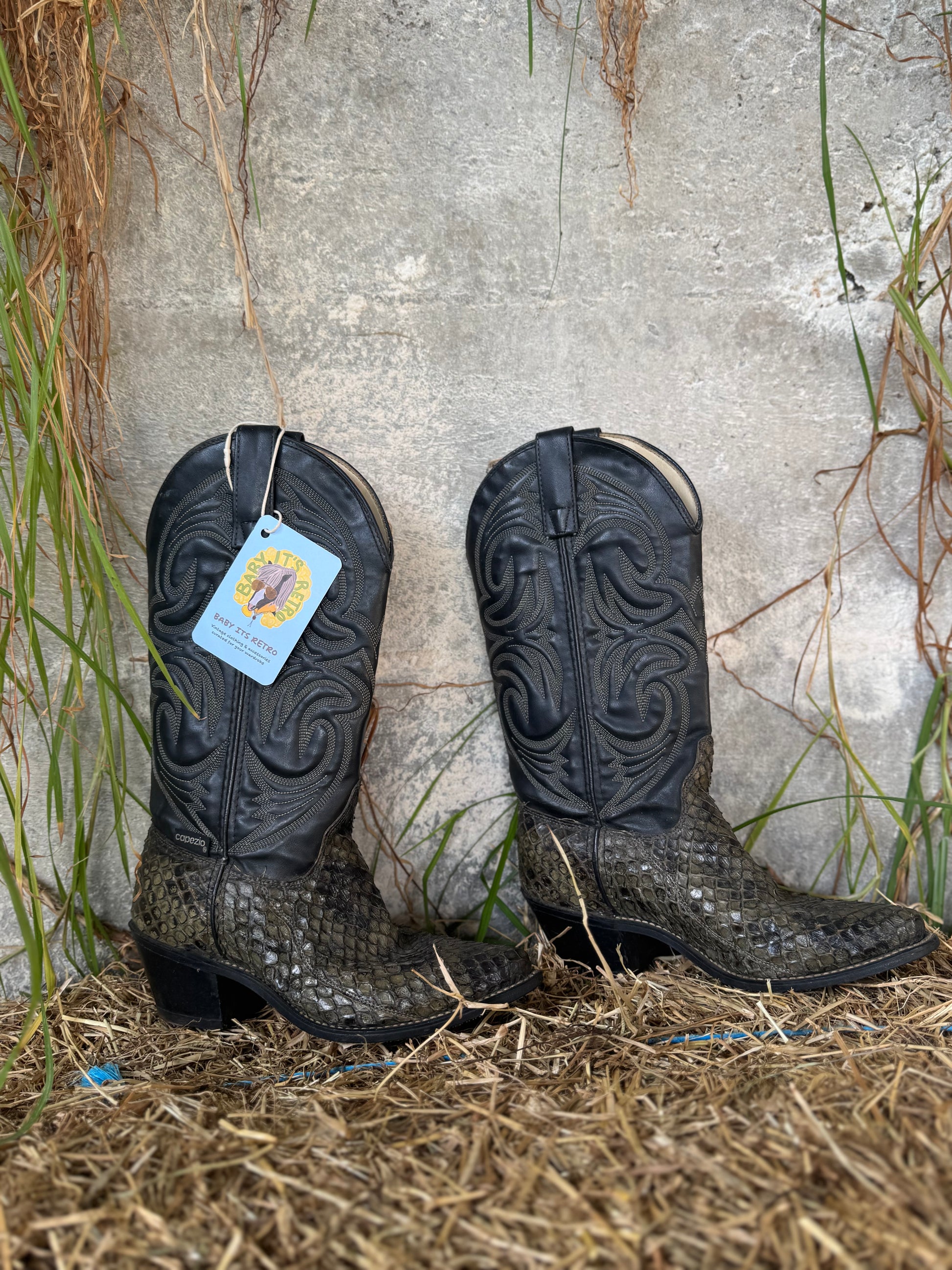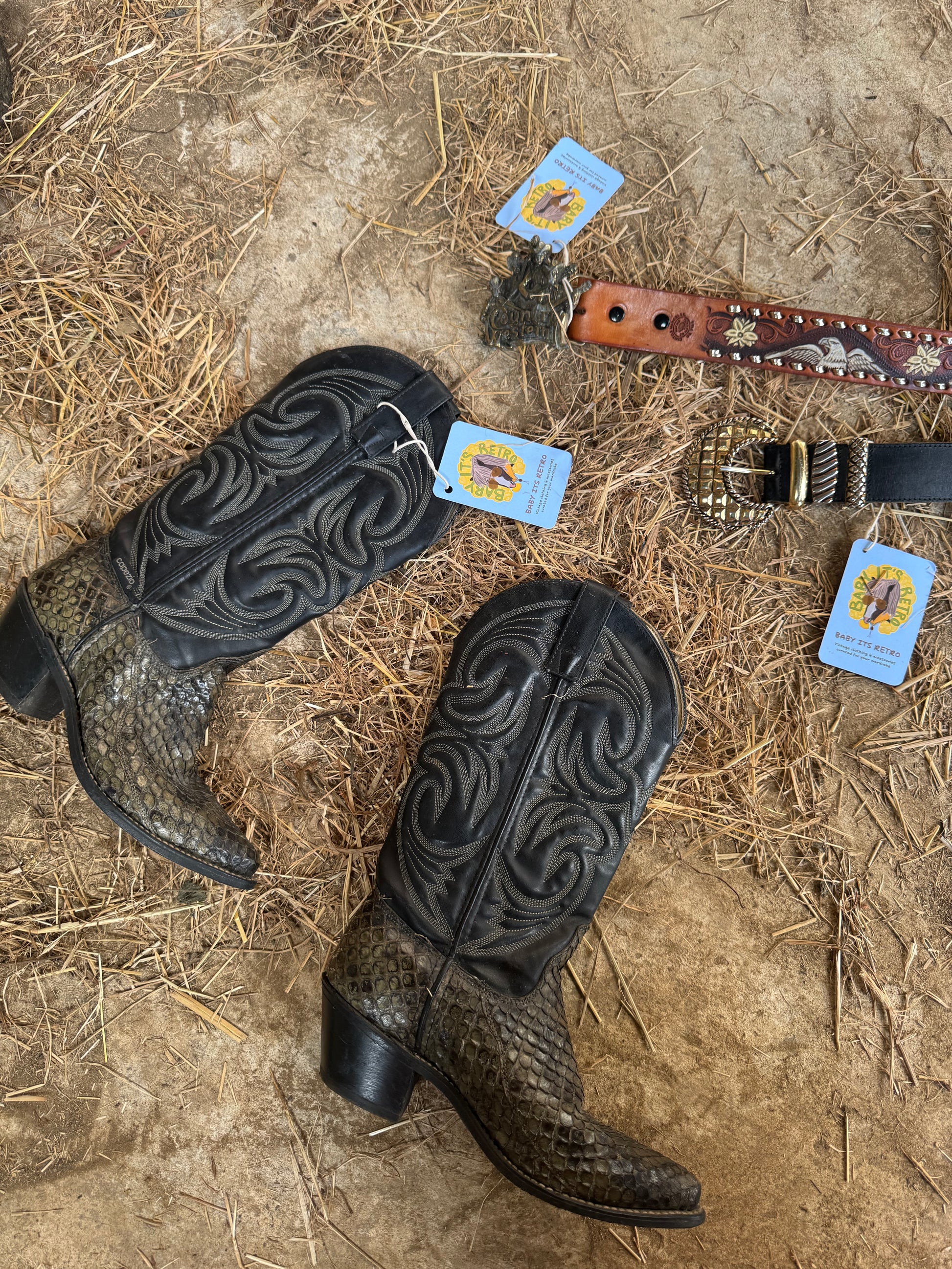 Composition: leather (the foot appears to be alligator skin). Sole man made material.