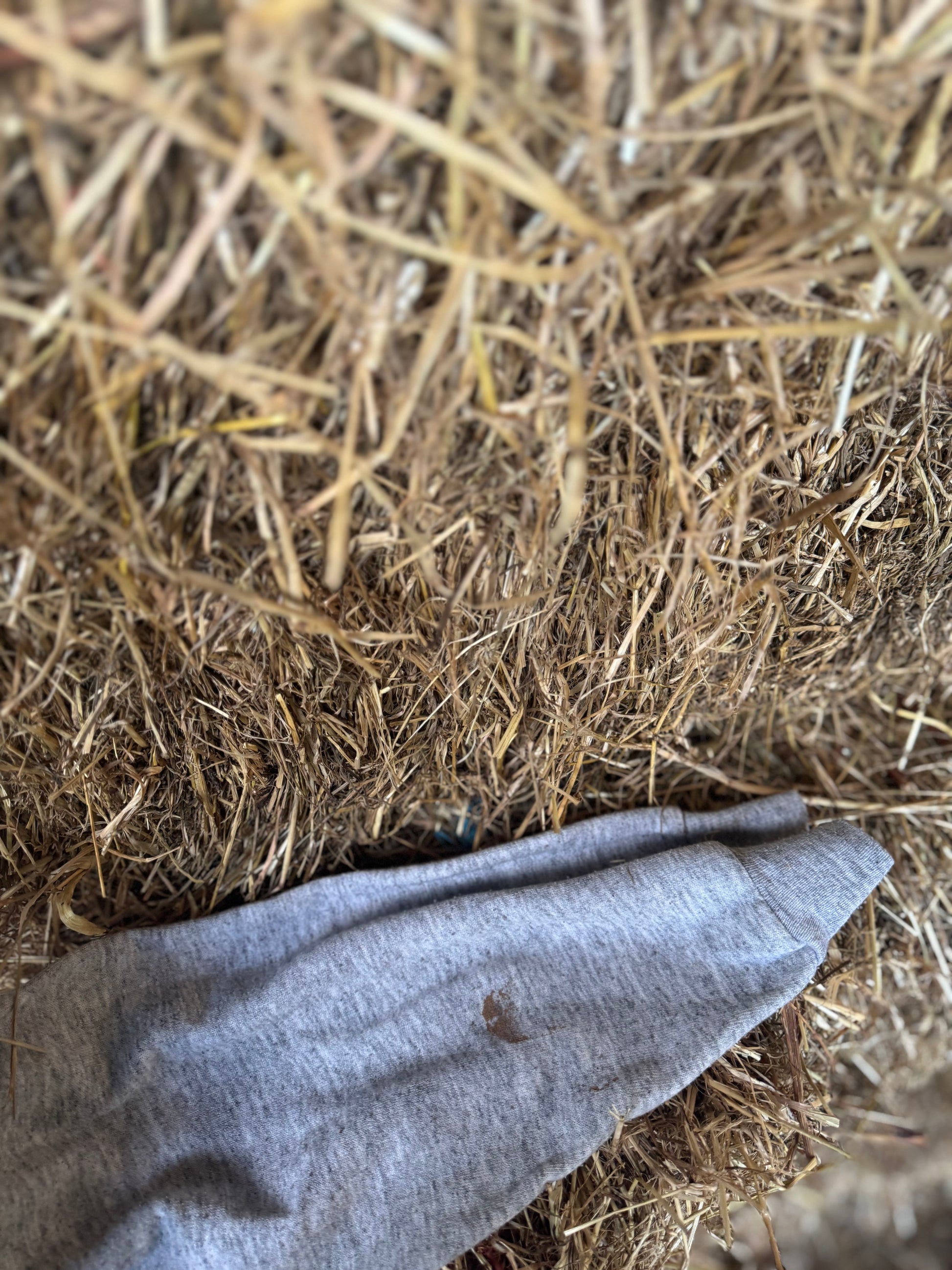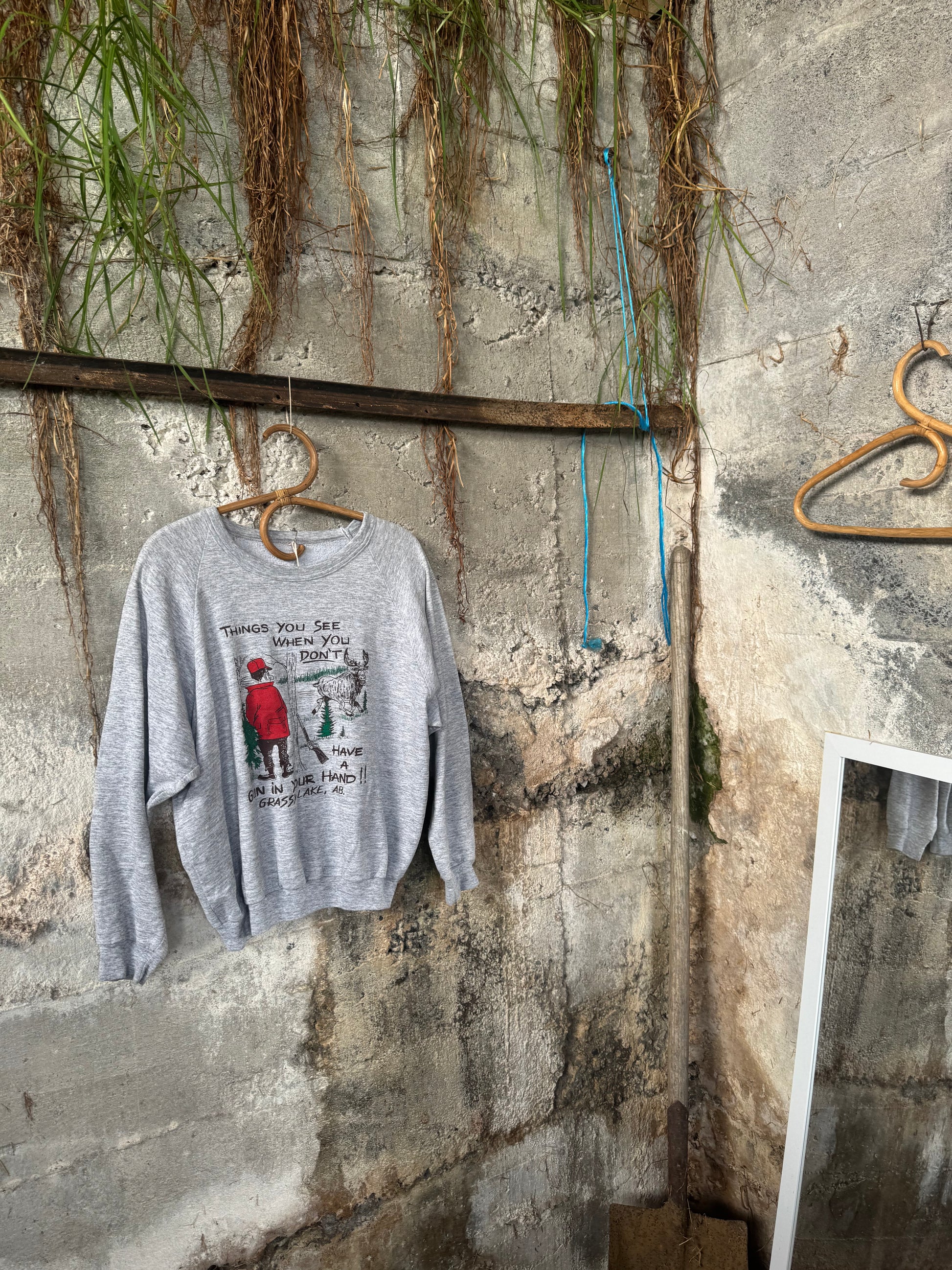 This one has no tag, I’m guessing 70/80s, it’s more of an 80s shape as it’s a boxy fit and slightly cropped compared. Has a paint mark on one arm as photographed.