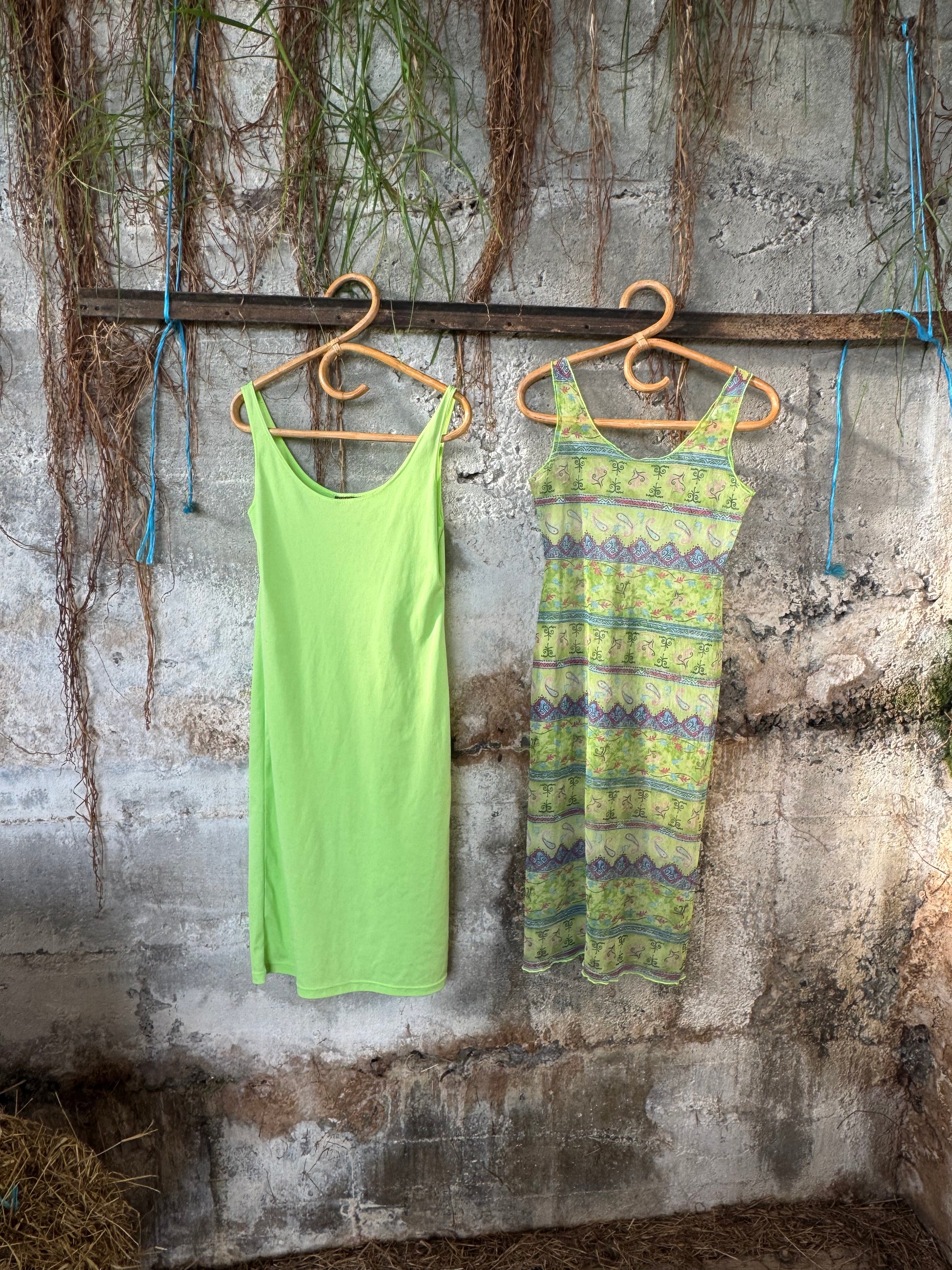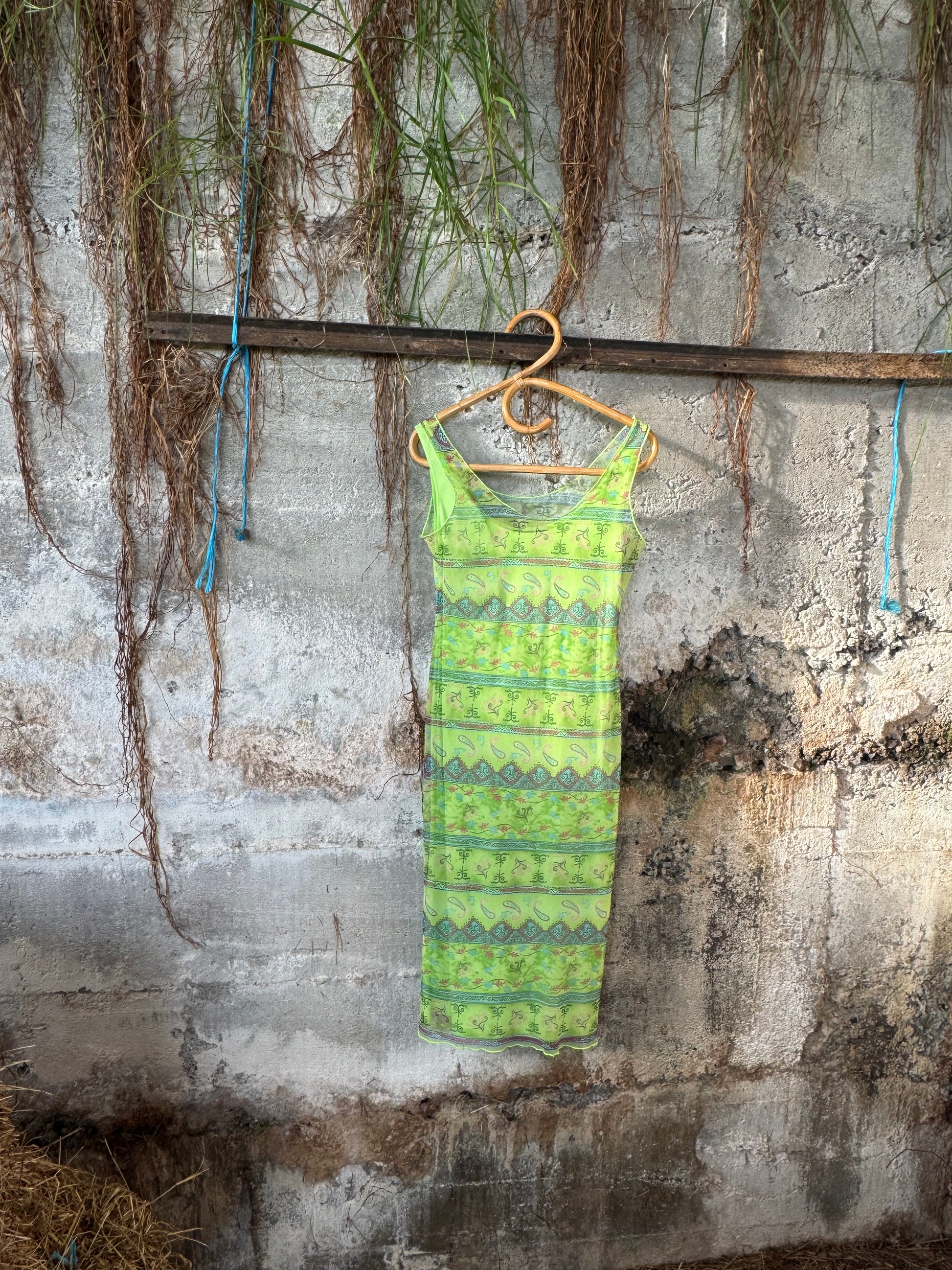 Vintage mesh dress with lime inside layer.